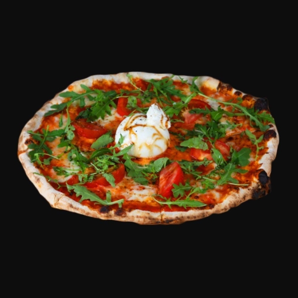 (соус томатный, руккола, сыр буррата, моцарелла, соус песто)